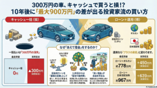 300万円の車、キャッシュ一括で買うのは待って!投資家パパが「低金利ローン×資産運用」で10年後に1,000万円近い差をつける戦略を徹底解説。オルカンや日本高配当株(KDDI等)で運用した場合の実質負担額をシミュレーション。完済後に月2.6万円の配当を得る驚きの結果とは?