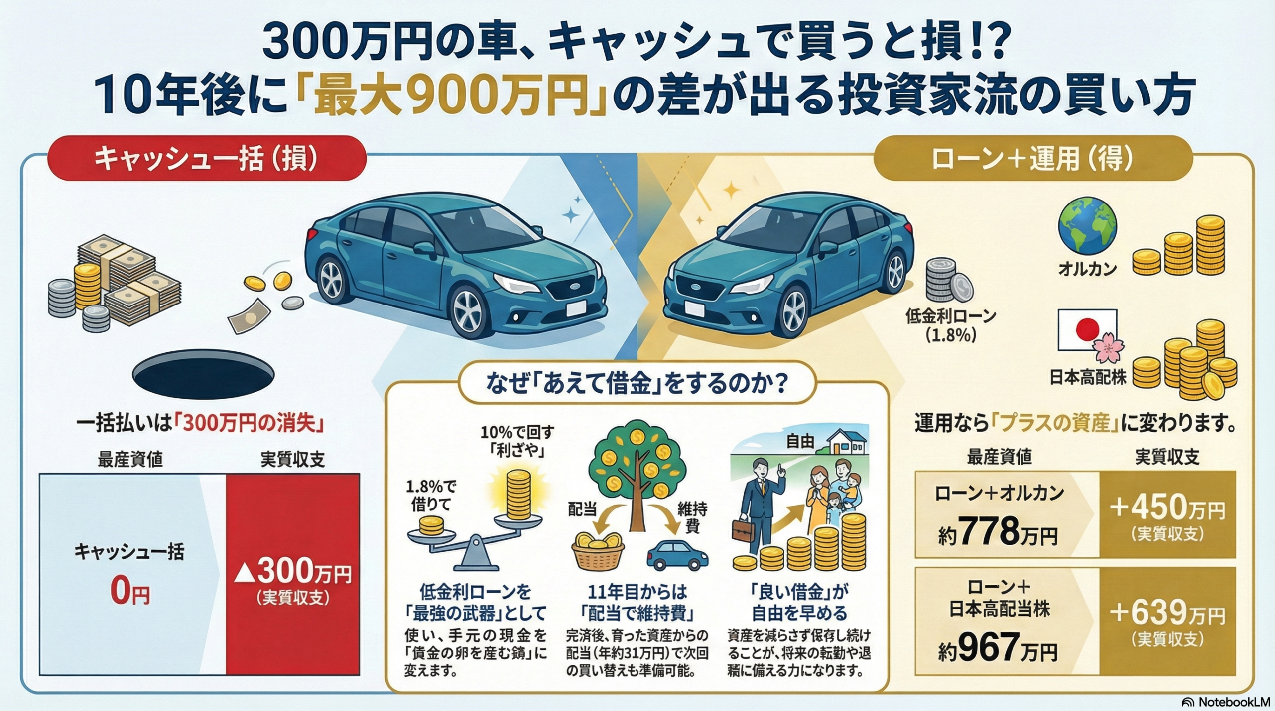 300万円を「価値が下がり続ける鉄の塊(車)」に変えて終わらせるか、それとも「黄金の卵を産み続ける鶏(資産)」として手元に残すか。