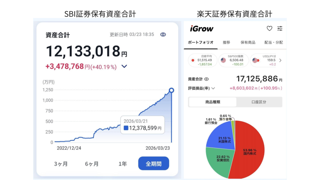 「2つの証券口座を使い分けて、合計約3,000万円を運用中です(2026年3月時点)」